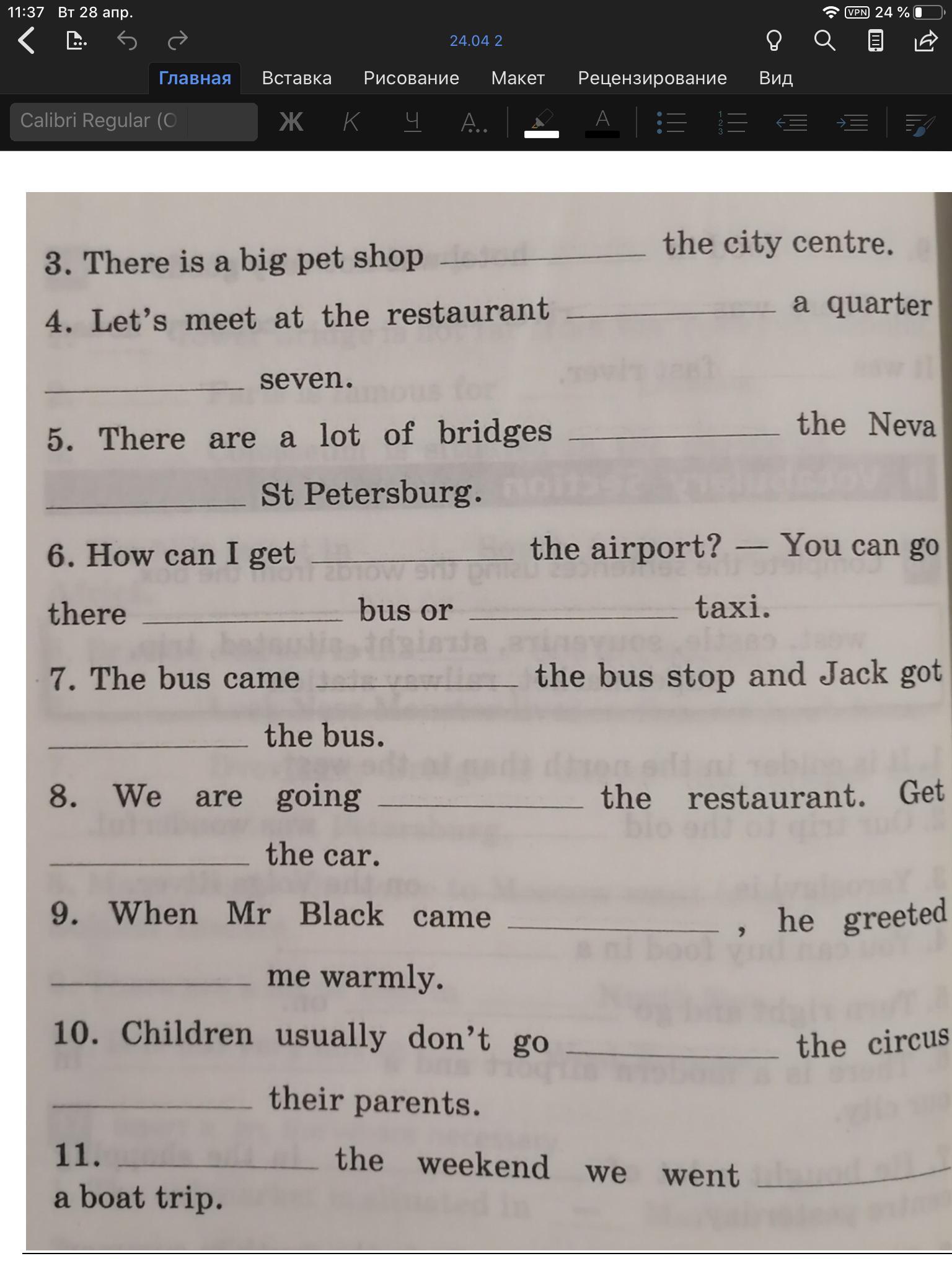 4. Into, for