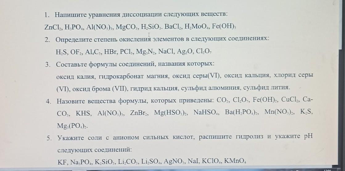 5)Укажите соли с анионом сильных кислот, распишите гидролиз и укажите рН следующих соединений: