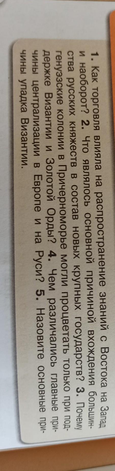 1) Купцы переносили с востока не только ценные вещи, но и многие знания и умения. Например: Из Китая привезли бумагу (до Китая в Европе не было бумаги).
