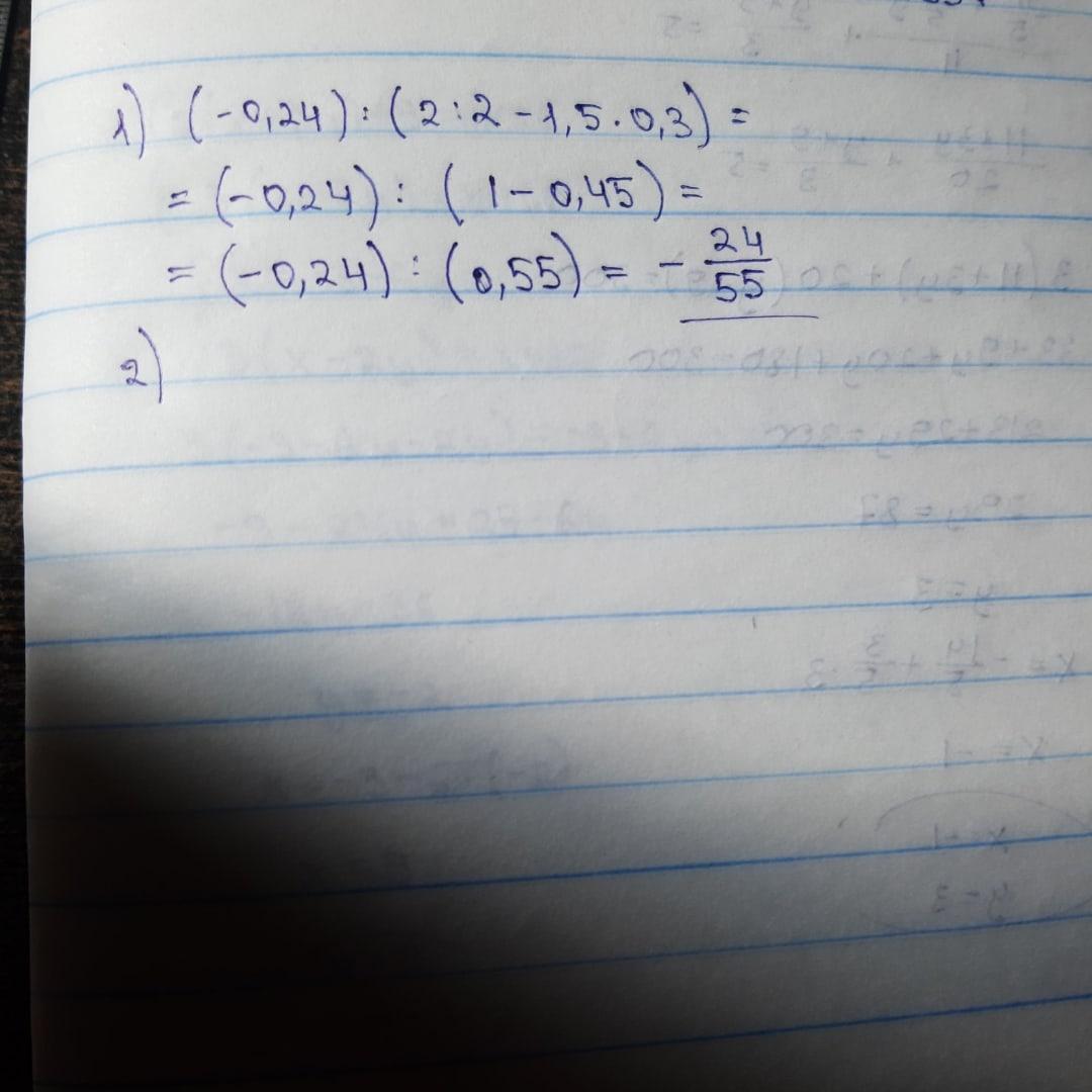 №1 Вычислите: (-0,24):( 2:2 – 1,5×0,3).
