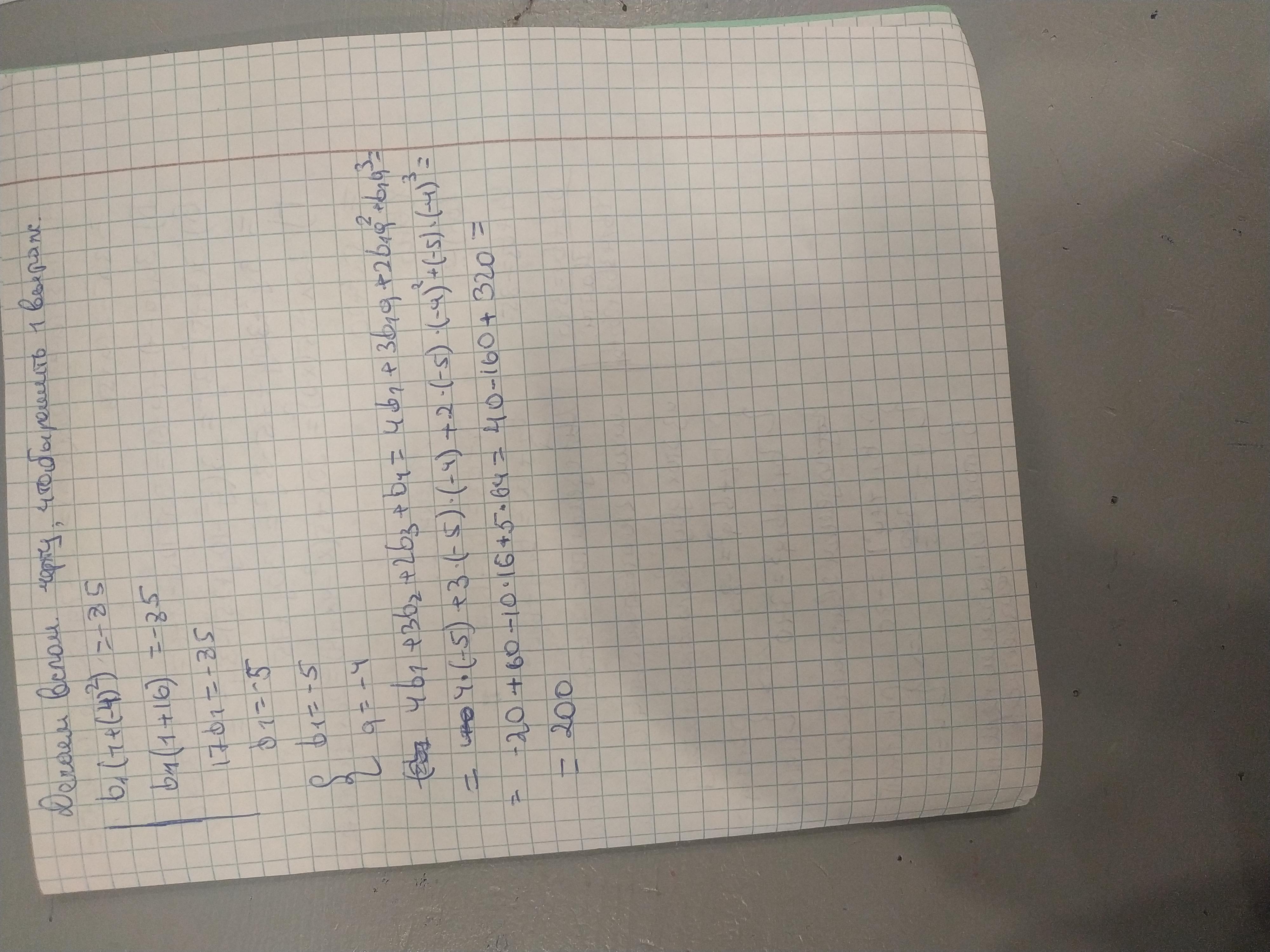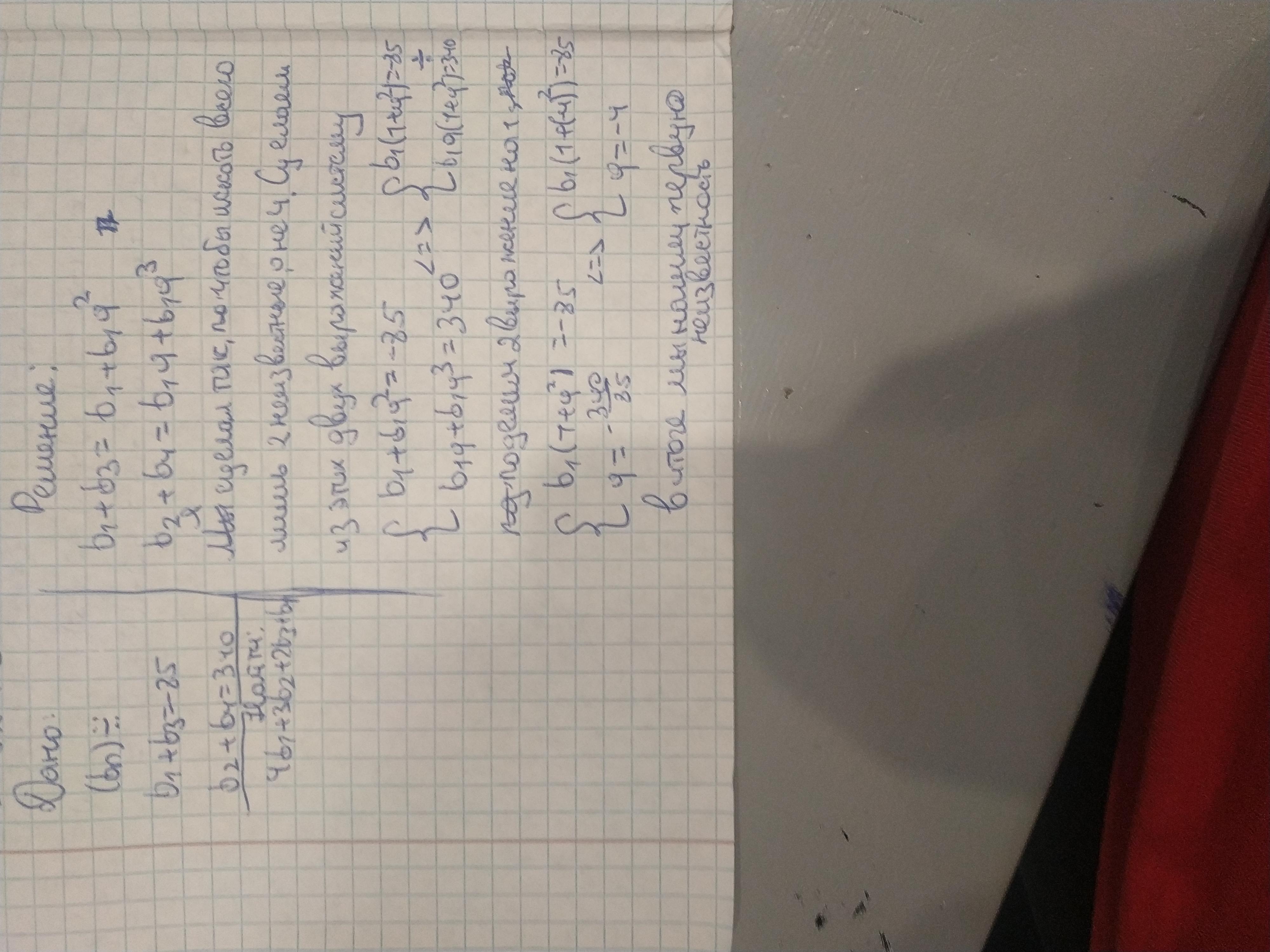 Дана геометрическая прогрессия (bn). Известно, что b1+b3=−85 и b2+b4=340. Найдите сумму 4b1+3b2+2b3+b4.