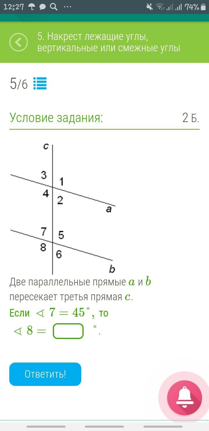 Если∢7=45°,то ∢8=