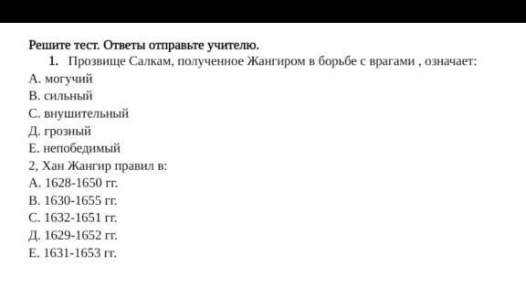 После оглушительной победы в Орбулакской битве за свой небольшой рост и крепкое телосложение получил от народа прозвище "Салкам Жангир" что переводится как "внушительный, могучий Жангир