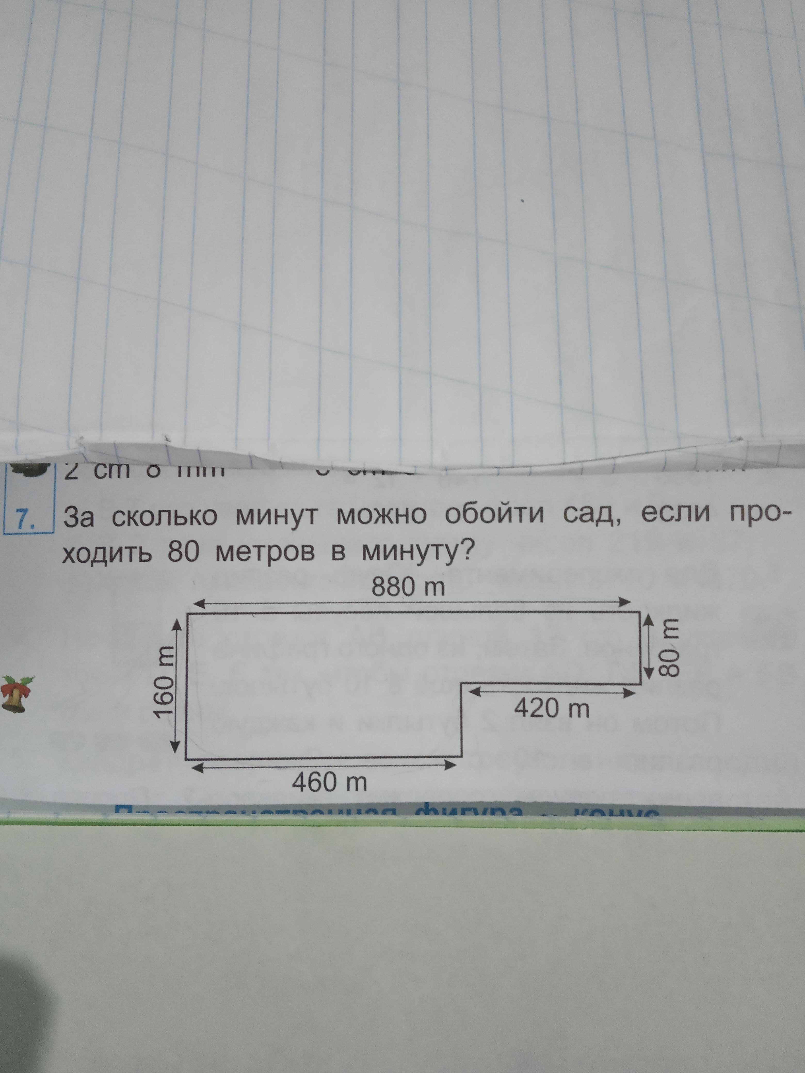 1) Надо найти периметр сада. Периметр равен сумме всех сторон - их шесть, их них пять - известны (880+80+420+480+160), а одна - нет (на рисунке справа под стороной =420м.