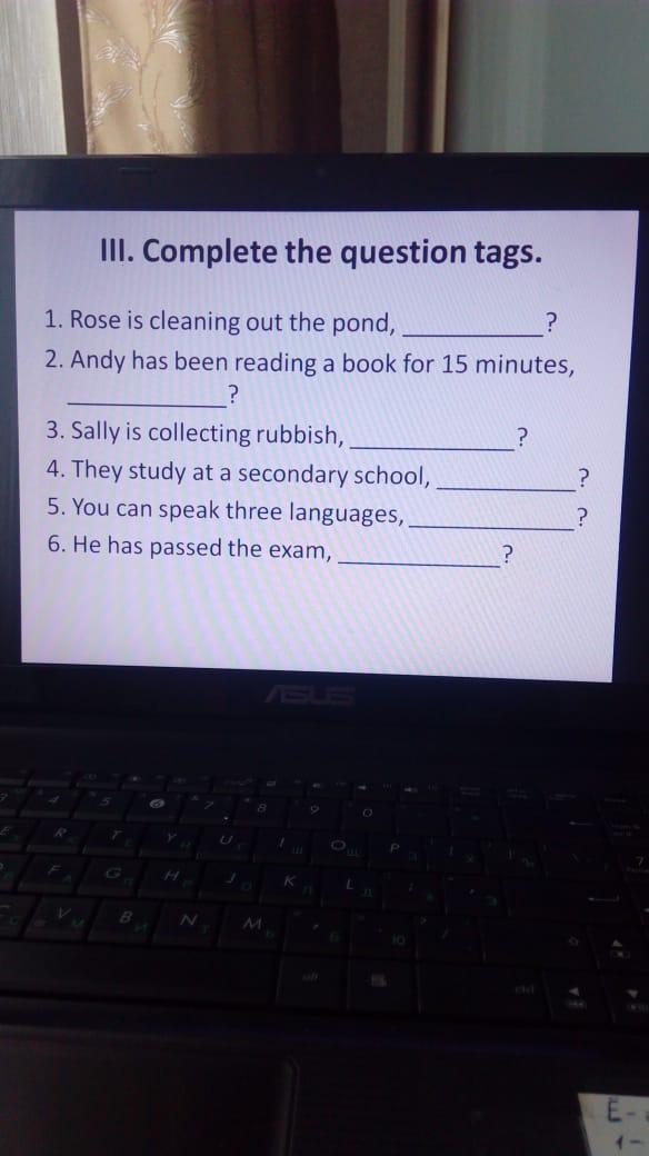 2. Andy has been reading a book for 15 minutes, hasn't he?