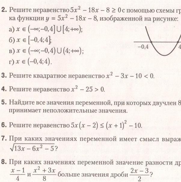2. Решите неравенство 5х2 – 18х – 8 > 0с помощью схемы графи-
