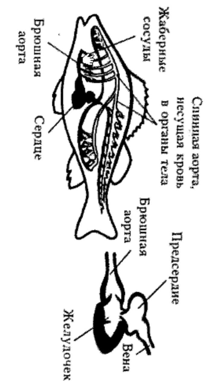 Брюшная аорта несет -1- кровь, а спинная - -2-. В сердце проходит – 3- кровь. Сердце состоит из -4- и -5-. Аорта – это -6- .