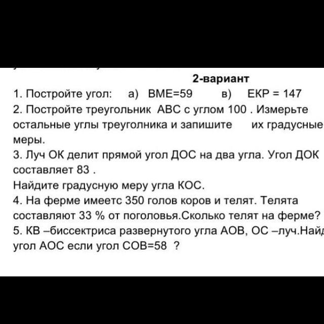 Сума углов 180° если 1 угол =100° то сумма оставшихся 180°-100°=80°