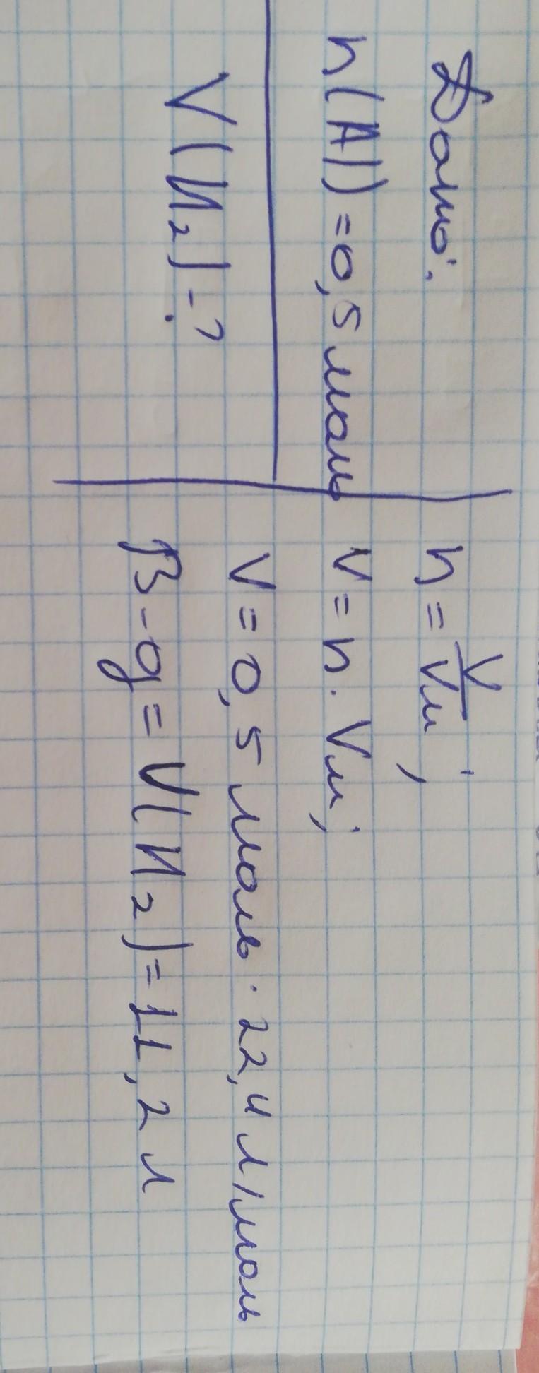 Який об’єм водню (н.у.)виділяється при взаємодії алюмінію кількістю речовини 0,5 моль із необхідною кількістю HCl?Дам 20 баловпросто ответ напишите