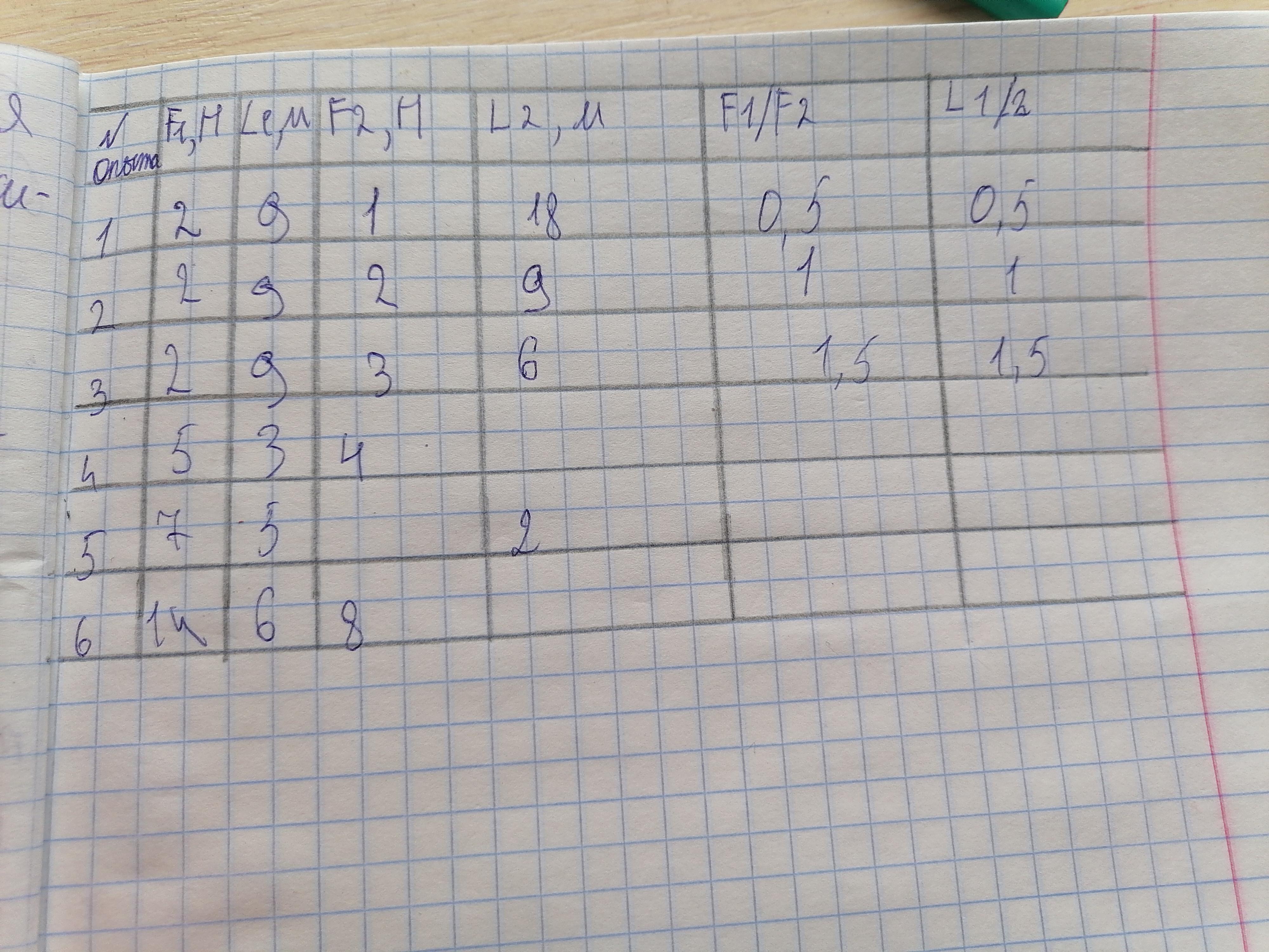 Помогите заполнить табличку ,,Изучение условий равновесия рычага"