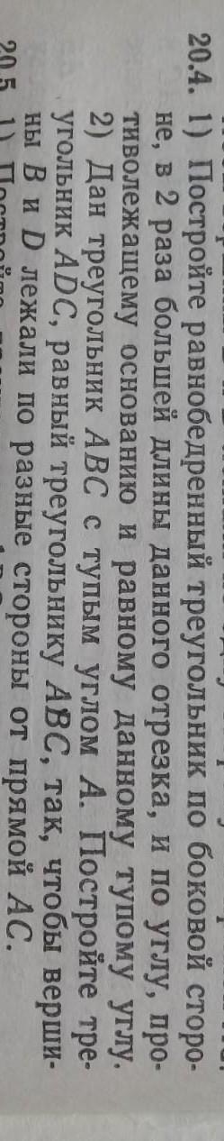 20.4. (1) Постройте равнобедренный треугольник по боковой стороне, в 2 раза большей длины данного отрезка, и углу, противолежащему основанию и равному данному тупому углу....