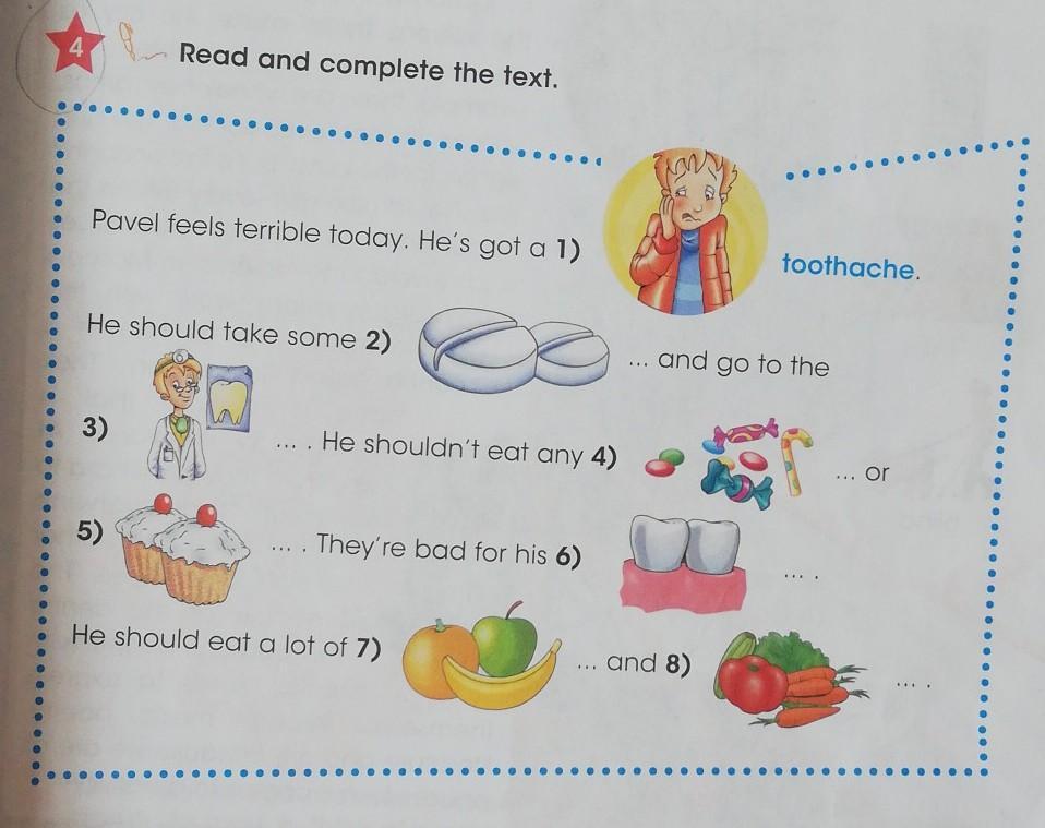 1) tablets 2)doctor 3)sweets 4) cakes 5)tooth 6) fruits 7)vegetables