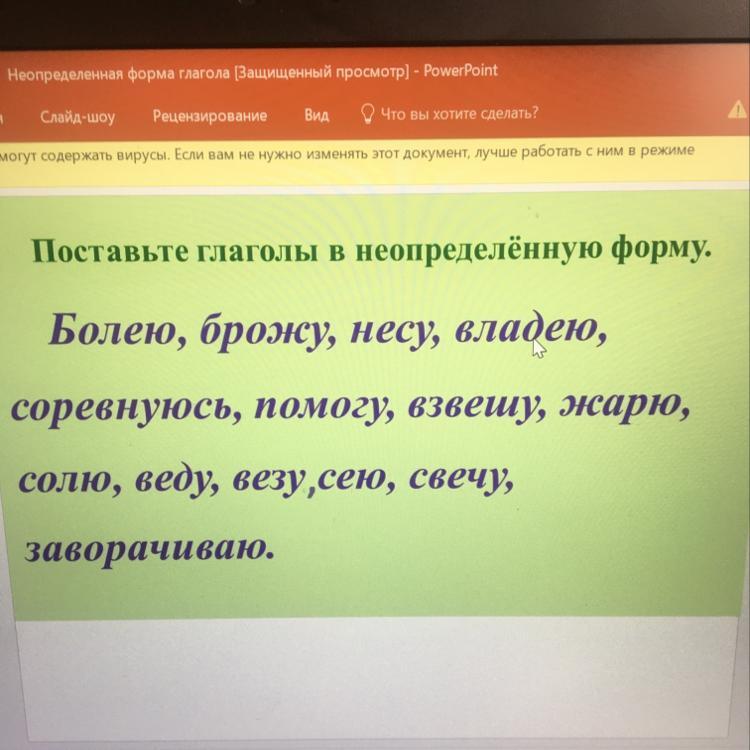 болеть, бродить, носить, владеть, соревноваться, помогать, взвесить, жарить, солить, водить, возить, сеять, светить, заворачивать