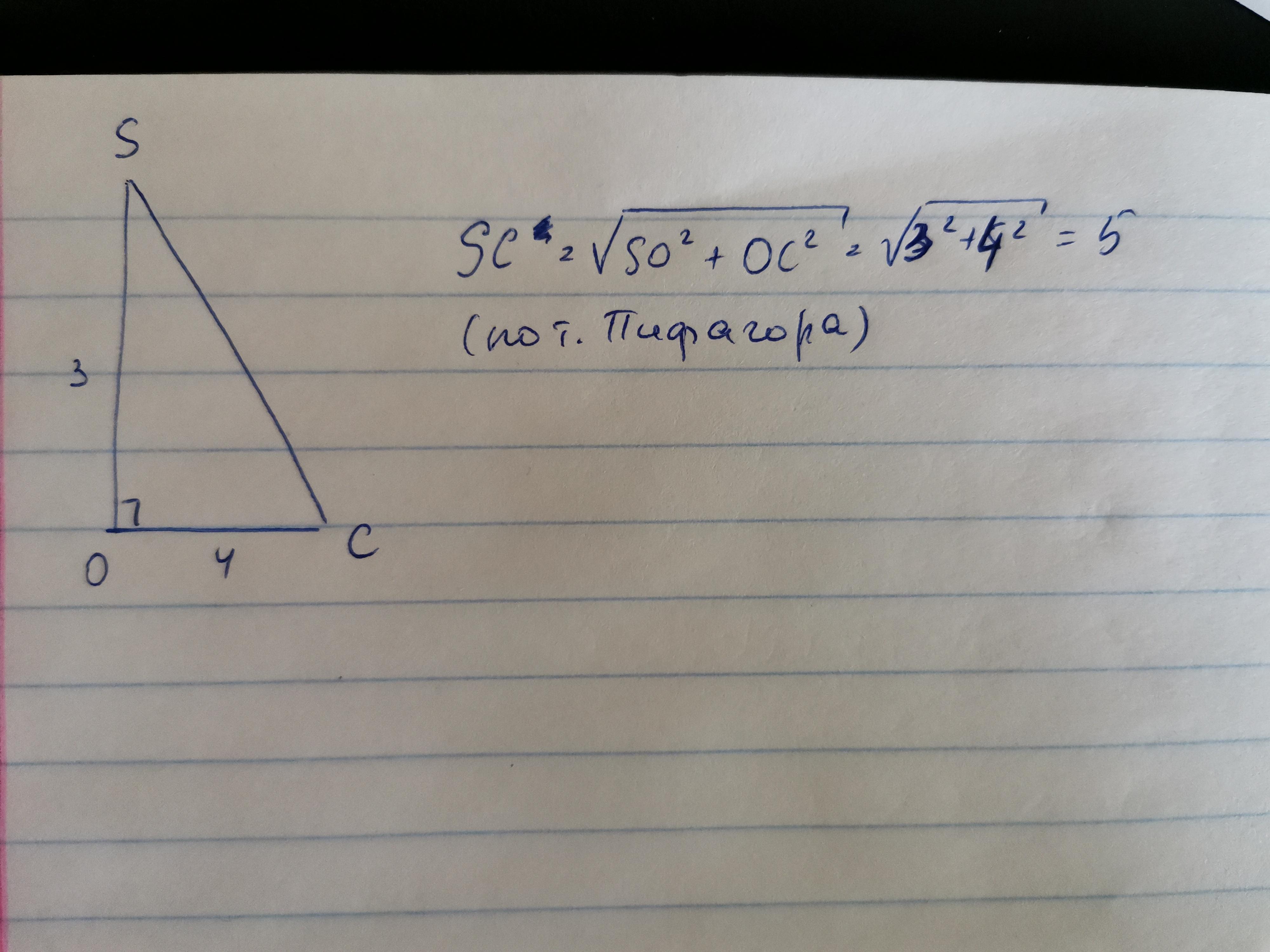 рассмотрим прямоугольный треугольник SOC, в котором OC=AC:2=4, OS=3