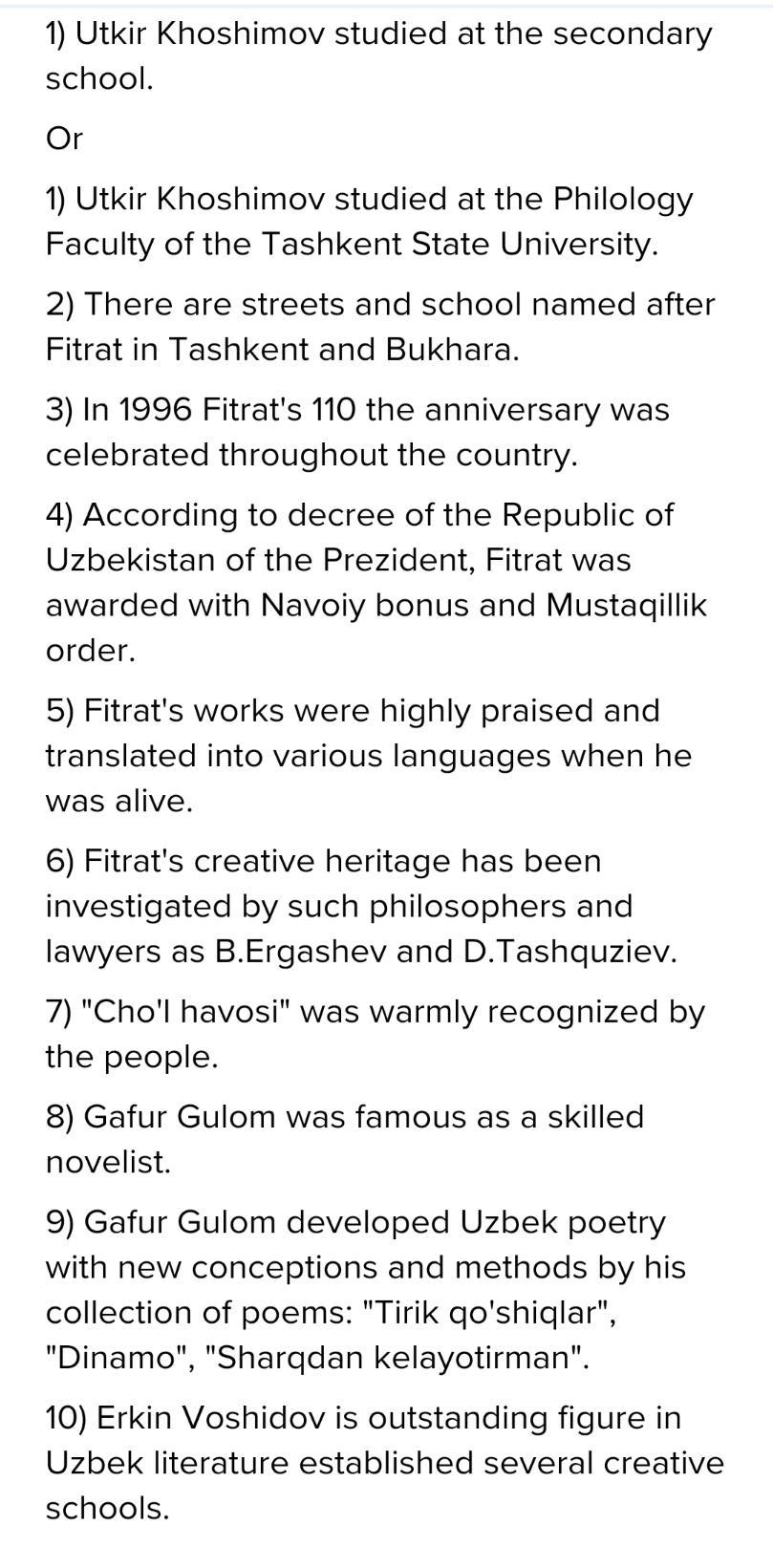 10. Several creative schools / established / is outstanding / in Uzbek /