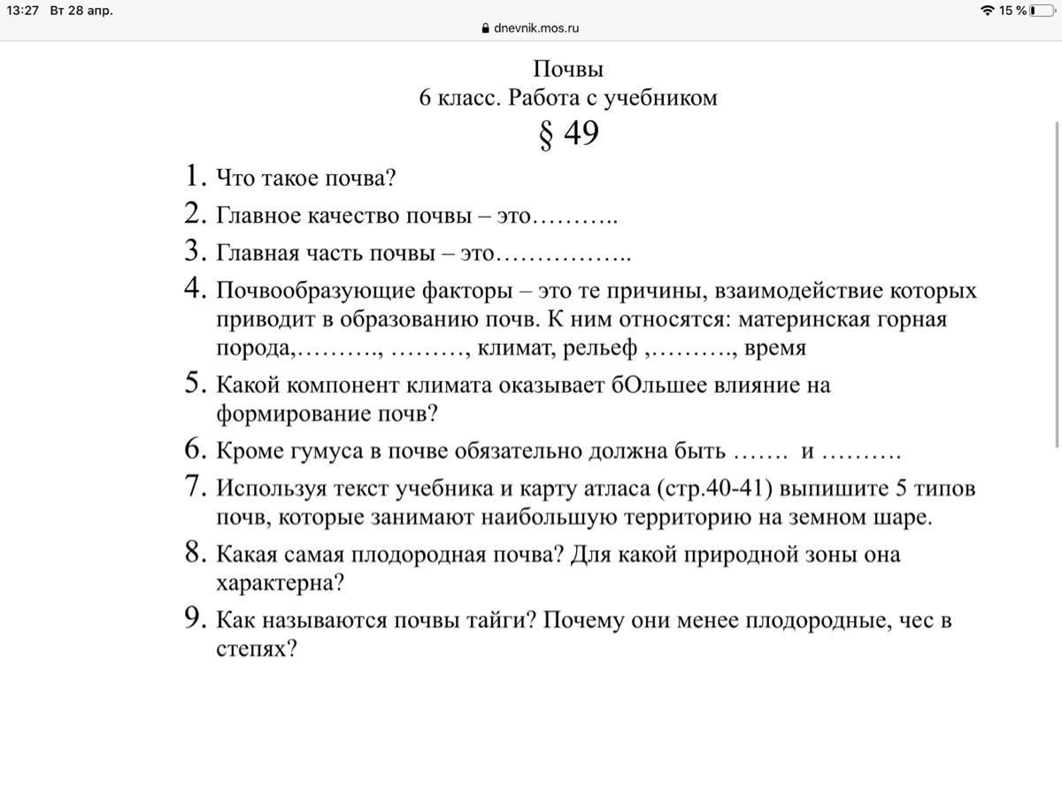 1.Почва – природное тело, которое появилось на планете вследствие взаимодействия следующих факторов: климатических условий, растений, животных, всевозможных микроорганизмов.