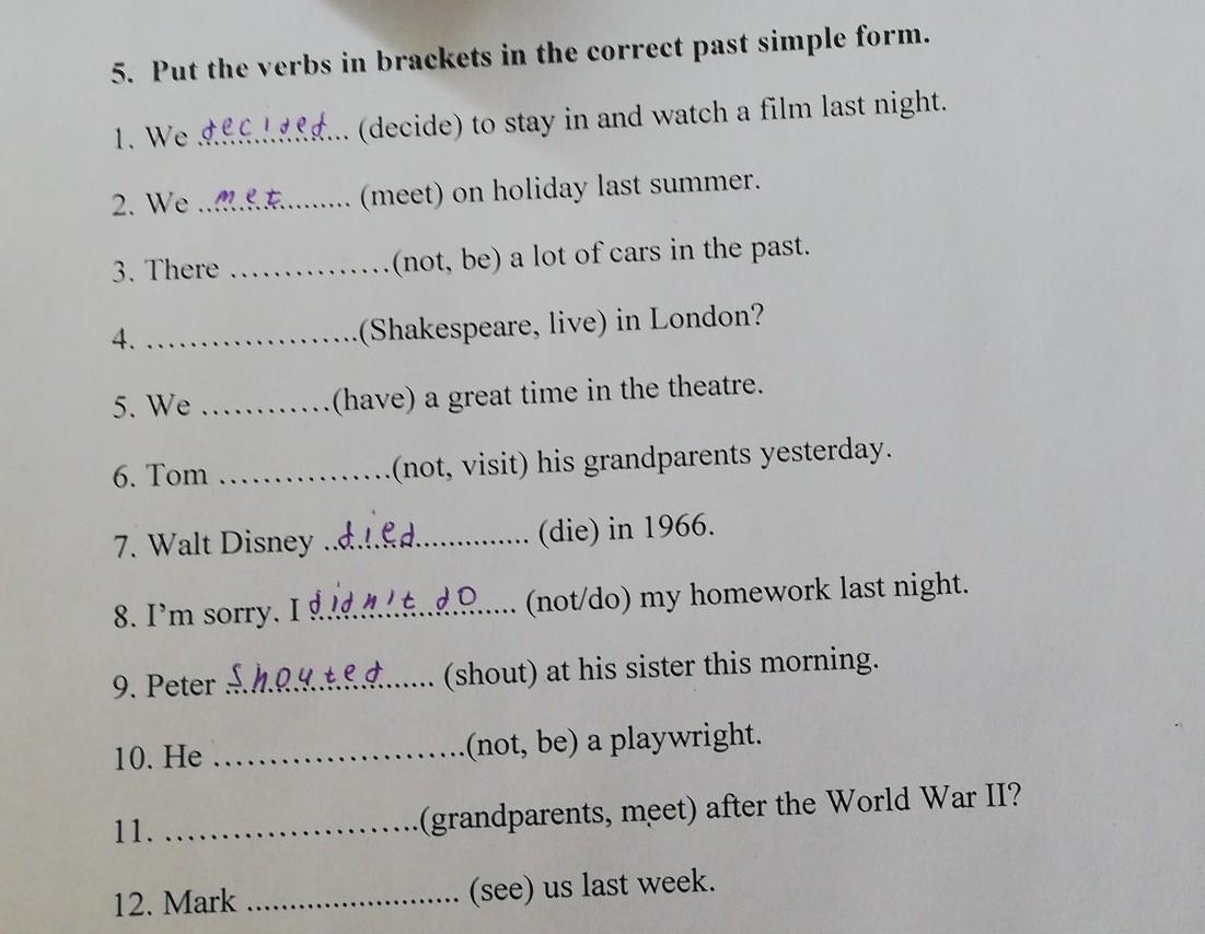6) не знаю правильный глагол это или нет. visited - если гл. правильный