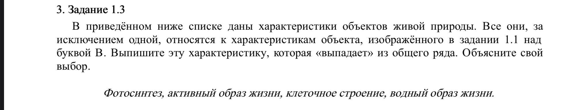 1.3 Фотосинтез, так как объект на рисунке В не может синтезировать энергию солнца.