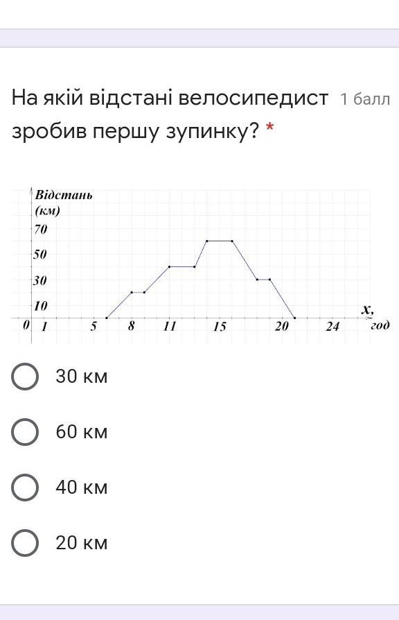 так как на графике в токе 20 км время шло, а расстояние не менялось ответ 20 км