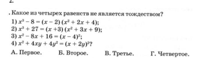 x^3 + 27 = x^3 + 3^3 (сумма кубов) = (x + 3)(x^2 - 3x + 9)