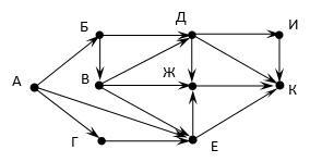 На рисунке – схема дорог, связывающих города А, Б, В, Г, Д, Е, Ж, И, К. По каждой дороге можно двигаться только в одном направлении, указанном стрелкой. Сколько существует различных путей из города А в город К?