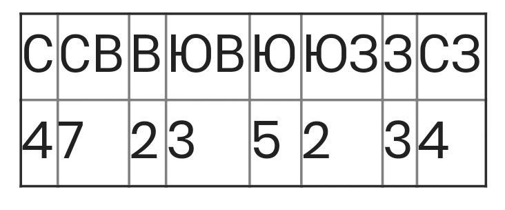 Постройте розу ветров по данным таблицы. По рисунку определите, какие ветры преобладали в данном месяце.