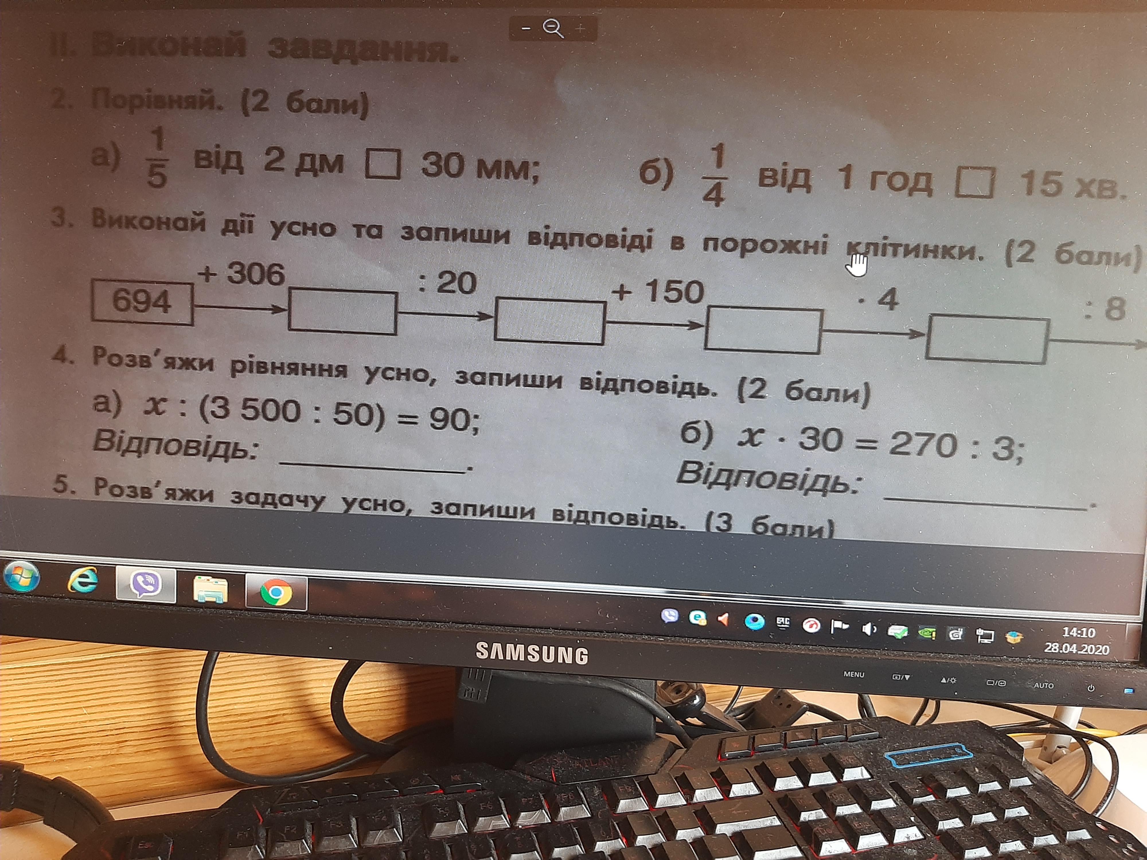 Відповідь: 694+306=1000:20=50+150=200*4=800:8=100