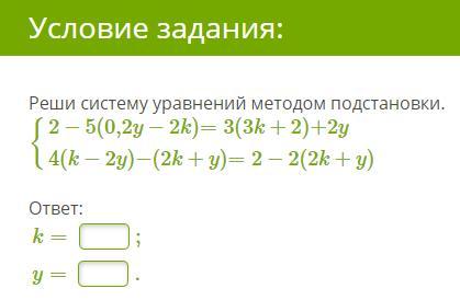 {2−5(0,2y−2k)=3(3k+2)+2y4(k−2y)−(2k+y)=2−2(2k+y)