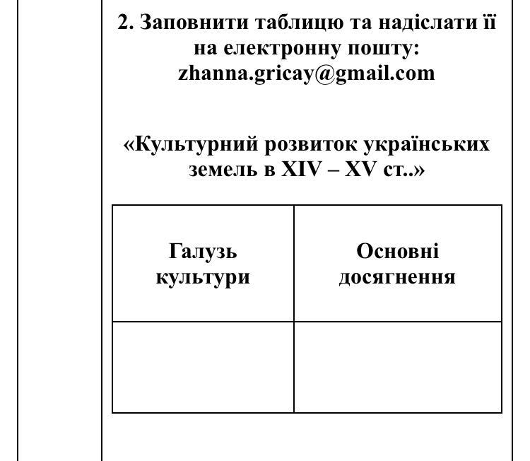 Заповніть таблицю Галузь культури та її основні досягнення , даю 20 Баллов, вот Фото
