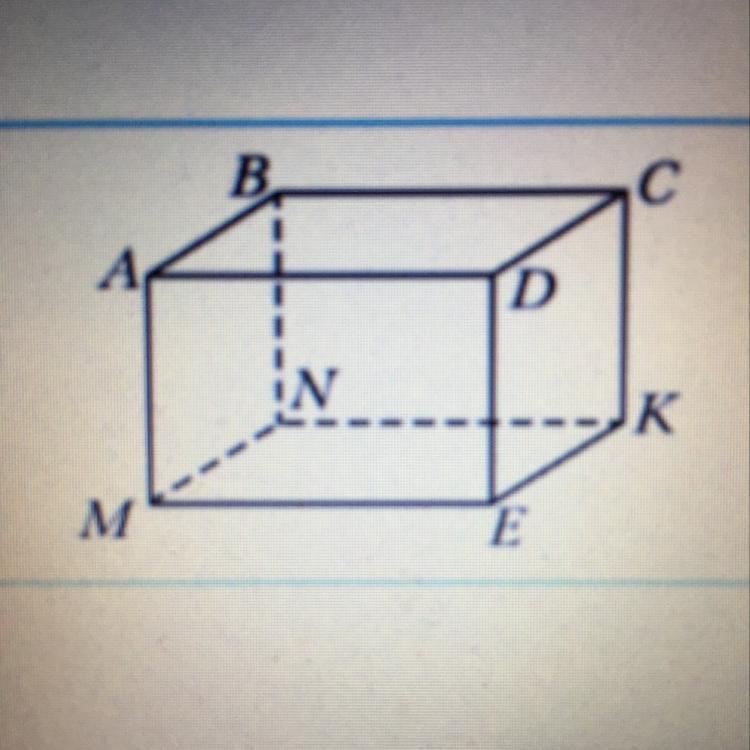 На рисунке изображён прямоугольный параллелепипед ABCDMNKE. Запишите рёбра: скрещивающиеся с ребром AM