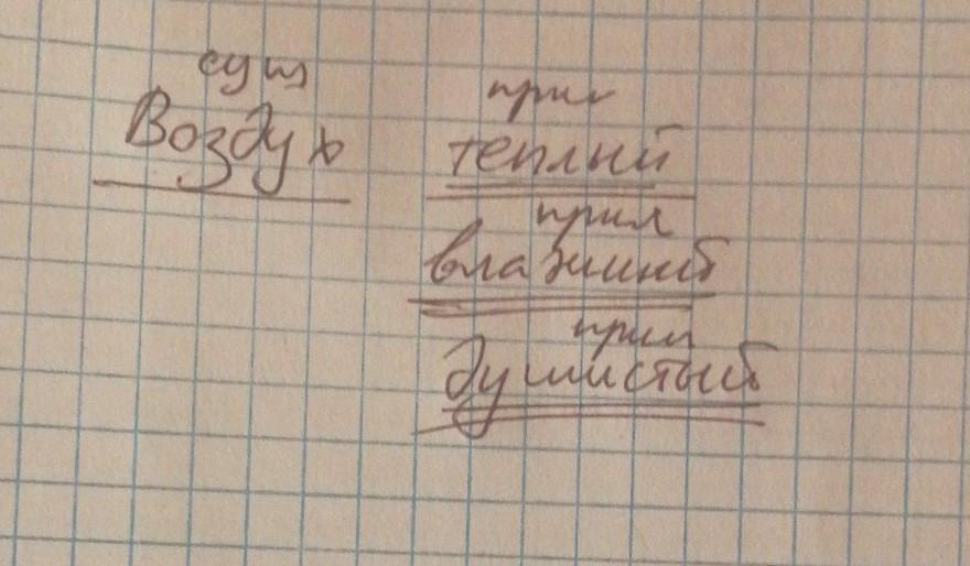 Воздух - подлежащее. Теплый, влажный, душистый- сказуемые.