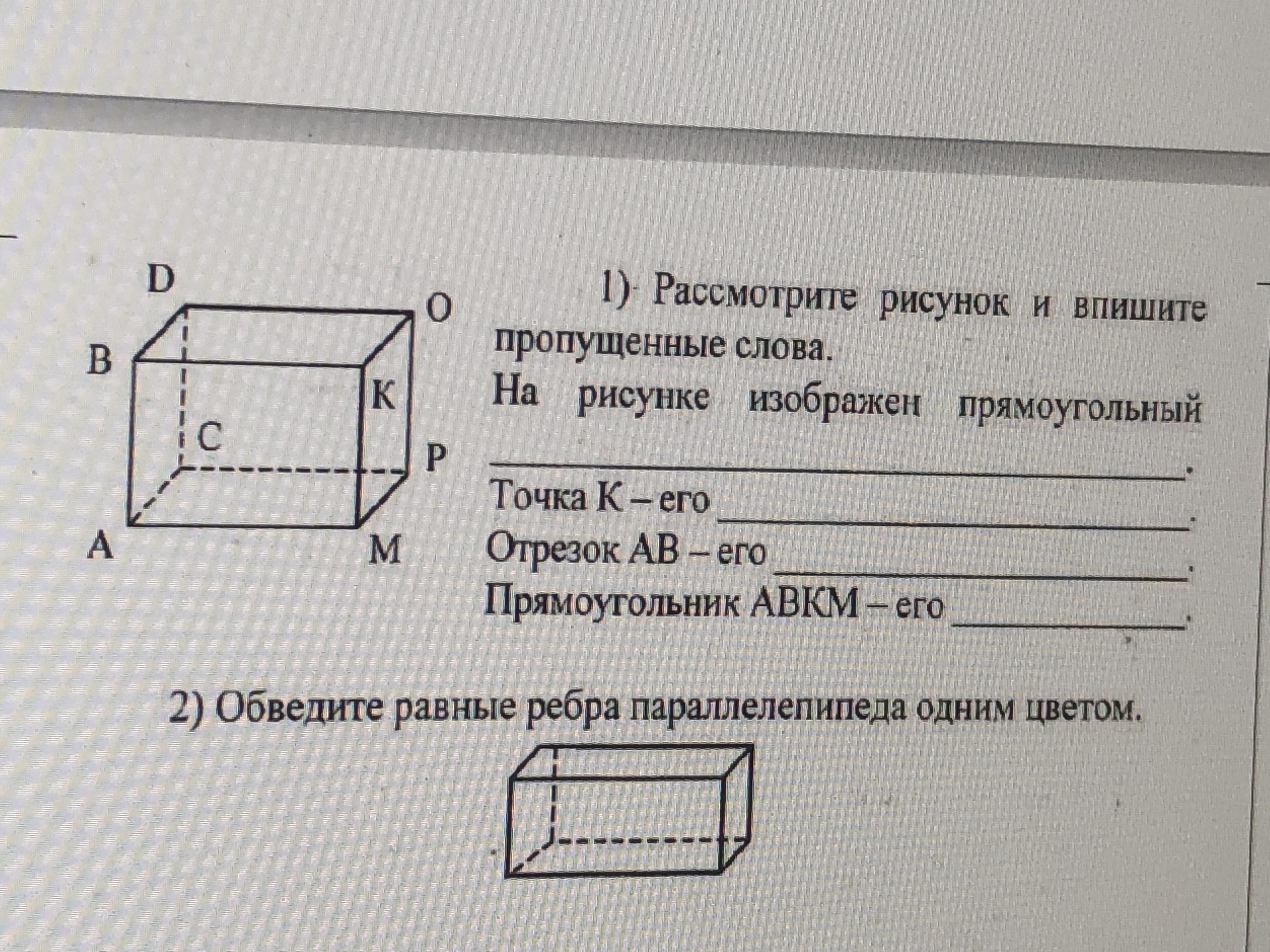1. На рисунке изображён прямоугольный параллелепипед.