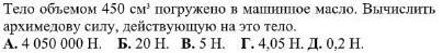 Ответ: Fархимеда=q(плостность машинного масла)*g*Vтела
