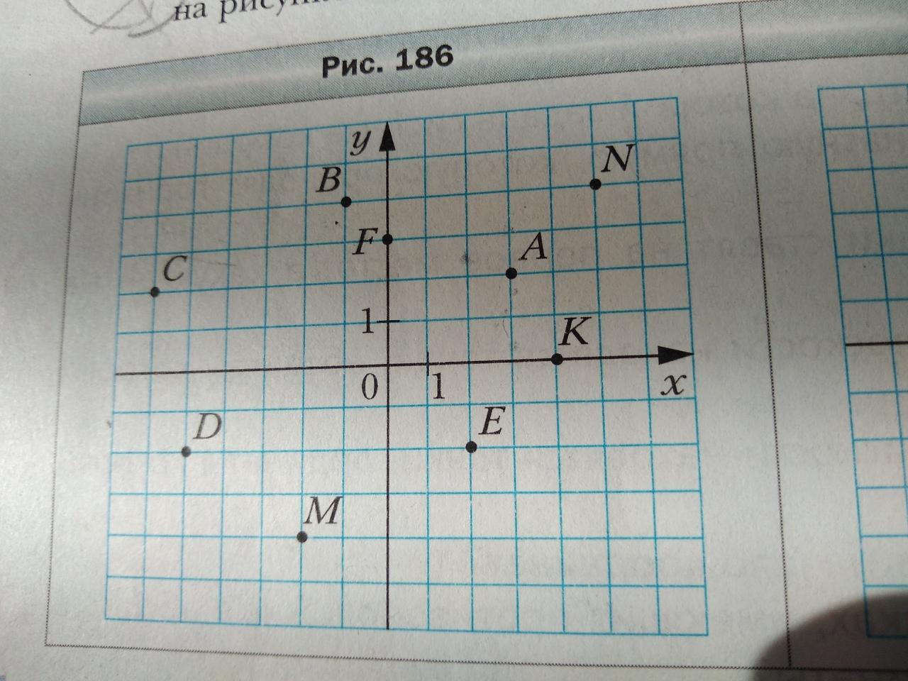 а (3,2) b (-1,4) c(-6,2) d(-5,-2) e(2,-2) f(0,3) n(5,4) k(4,0) m(-2,-4)