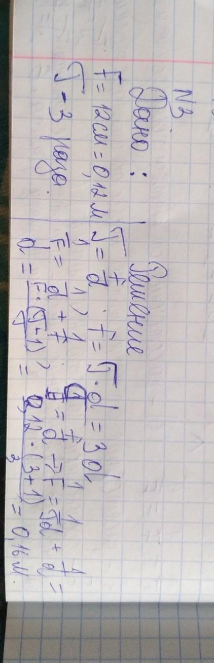 На каком расстоянии от линзы с фокусным расстоянием 12см надо поместить предмет , чтобы его действительное изображение было втрое больше самого предмета ?