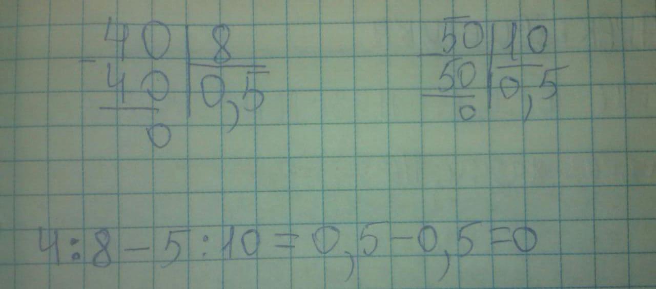 4/8 - 5/10 = (4/8)*10 - (5/10)*8 = 40/80 - 40/80 = 0
