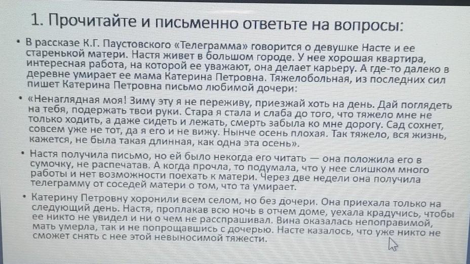 Вопросы по рассказу К.Г.Паустовского "Телеграмма"