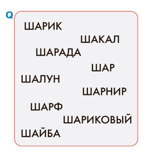 Шайба, шакал, шалун, шар, шарада, шарик, шариковый, шарнир, шарф.