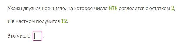 Укажи двузначное число, на которое число 878 разделится с остатком 2,