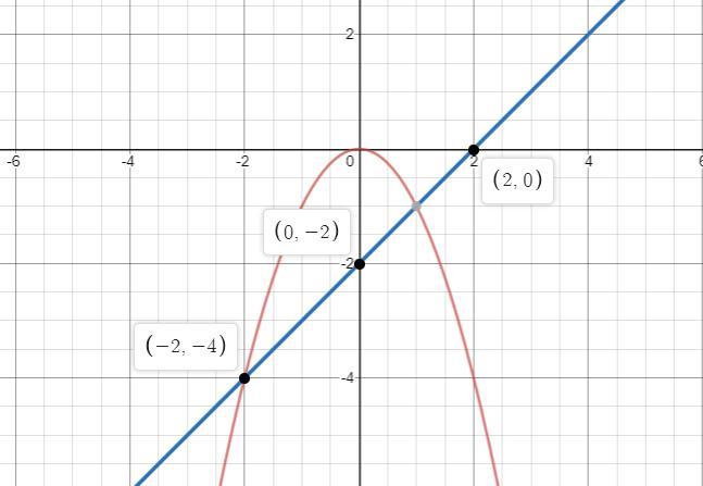 Постройке графики функций y=-x^2 и y=x-2 в одной системе координат. Найдите координаты точек пересечения графиков.