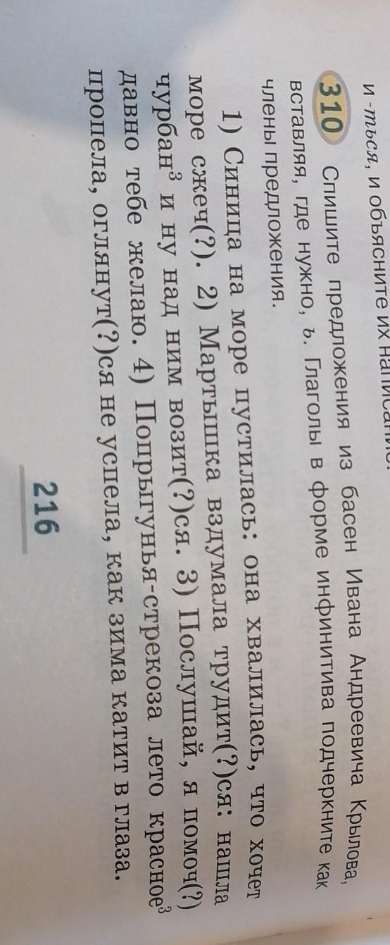 Спишите предложения из басен Ивана Андреевича Крылова вставляя где нужно мягкий знак глагол в форме инфинитива подчеркните как члены предложения