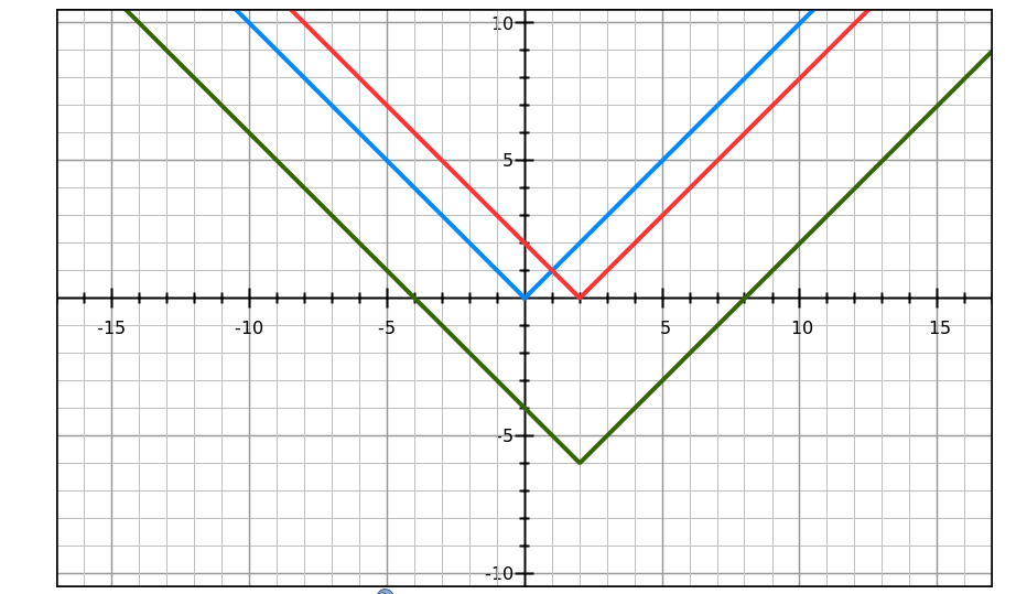 сам график модулю имеет форму двух линий, направленных из одной точки в две стороны по углом 45