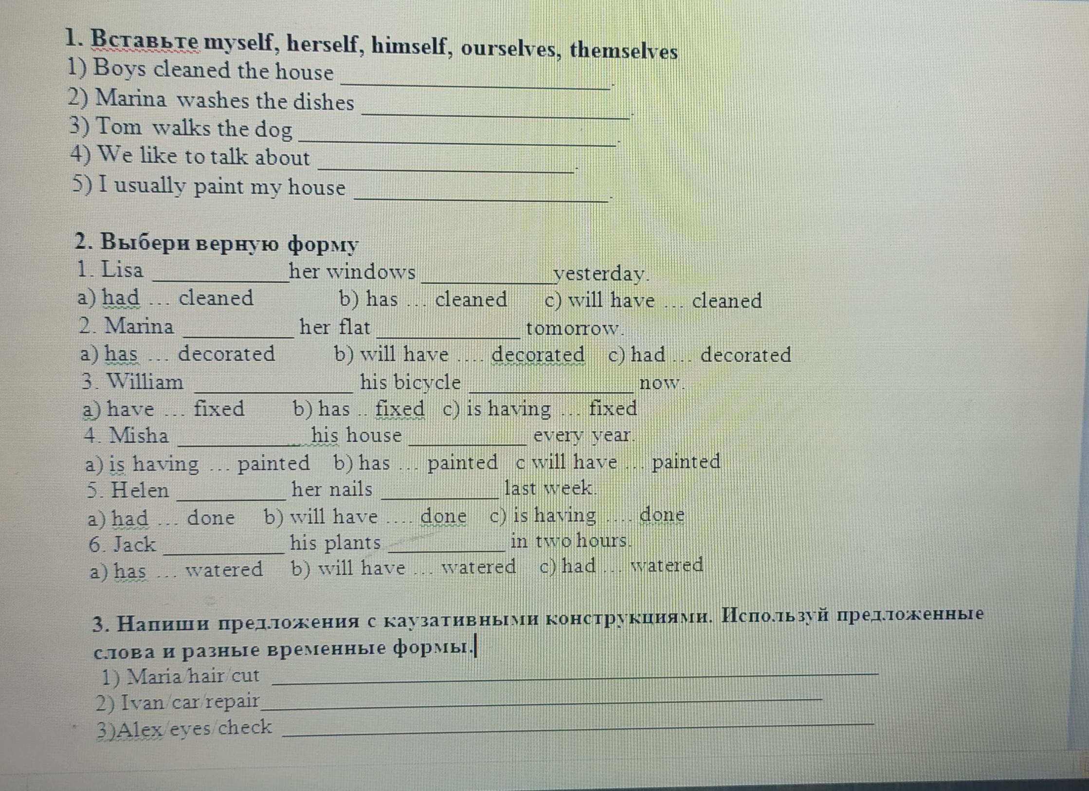 1) themselves 2) herself 3) himself 4) ourselves 5) myself