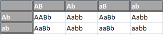 3AaBb, 2Aabb, 1Aabb, 1aaBb, 1aabb