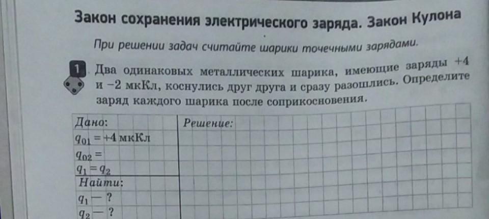 Два одинаковых металлических шарика имеющие заряди +4 и -2 мкКл коснулись друг друга и сразу разошлись. Определите заряд каждого шарика после соприкосновения