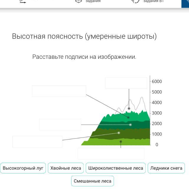 (С верху) Ледники снега, выкогорный луг, хвойные леса, смешанве леса, широколиственные леса..