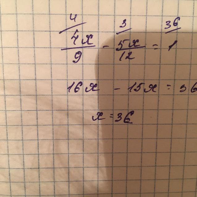 4х(умножаем на 4)/9-5х(умножаем на 3)/12=1