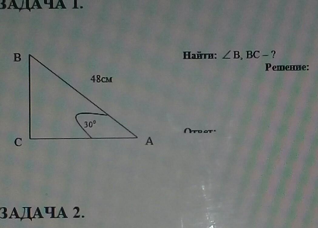 BC= AB:2=48:2=24см(т.к. напротив угла в 30 градусов катет равен половине гипотенузы)
