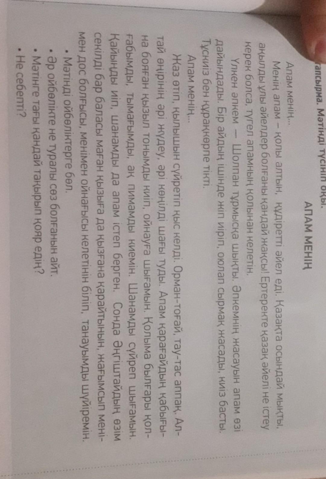 2) 1 анам туралы . 2апамның қолөнер оның таланты 3 қызық және күшті 2апамның маган тігіп берген киімдер мен заттар туралы