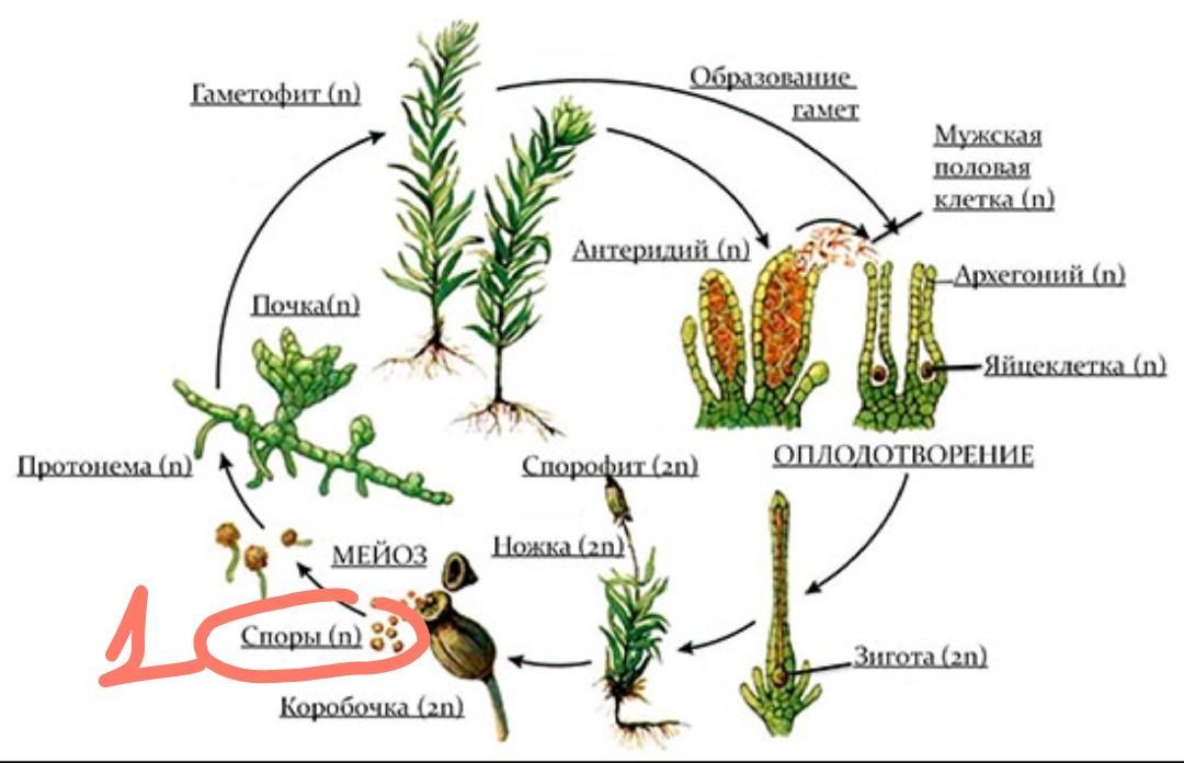 Найди верную последовательность стадий развития мха, начиная с оплодотворения. Зигота, образование спор, развитие спорофита, развитие предростка, образование яйцеклеток, прорастание споры, оплодотворение